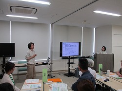 区内の子どもを取り巻く状況について共有した後、戸塚区地域子育て支援拠点とっとの芽 福本雅美施設長よりオープニングトークをいただきました。子ども支援と子育て支援の関係性や、近年の子育て事情についてのお話に、参加者からは「昔と今の子育ての違いに驚いた」といった声が聞かれました。